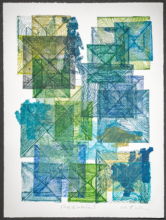 monotype avec tôles d'automobile et pointe sèche sur Tetra-Pak